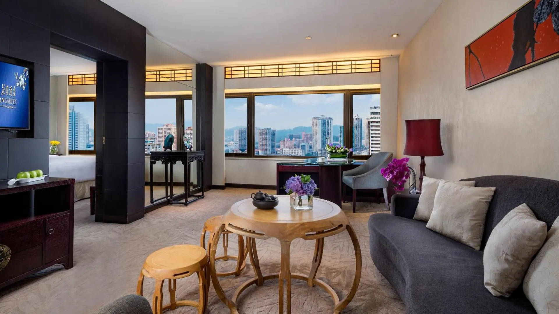El Garden Hotel Cantón cuenta con habitaciones con aire acondicionado que ofrecen TV de pantalla plana con canales vía satélite. Además, disponen de baños privados equipados con secadores de pelo y albornoces. Las habitaciones están equipadas con un minibar y servicio de tetera/cafetera, así como con un sofá y un escritorio. Los cuartos de baño incluyen una bañera de hidromasaje y una sauna, junto con comodidades como secadores de pelo y albornoces.